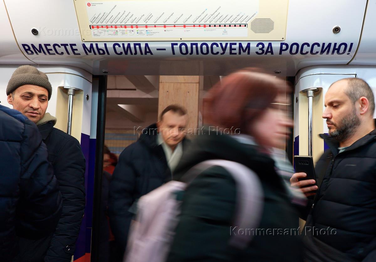 Genre photography. Pre-election campaigning for the Russian presidential elections on March 15-17, 2024 on subway cars.