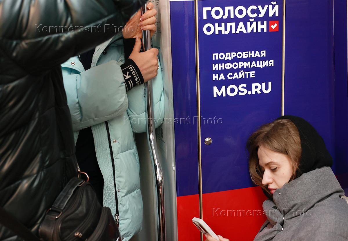 Genre photography. Pre-election campaigning for the Russian presidential elections on March 15-17, 2024 on subway cars.