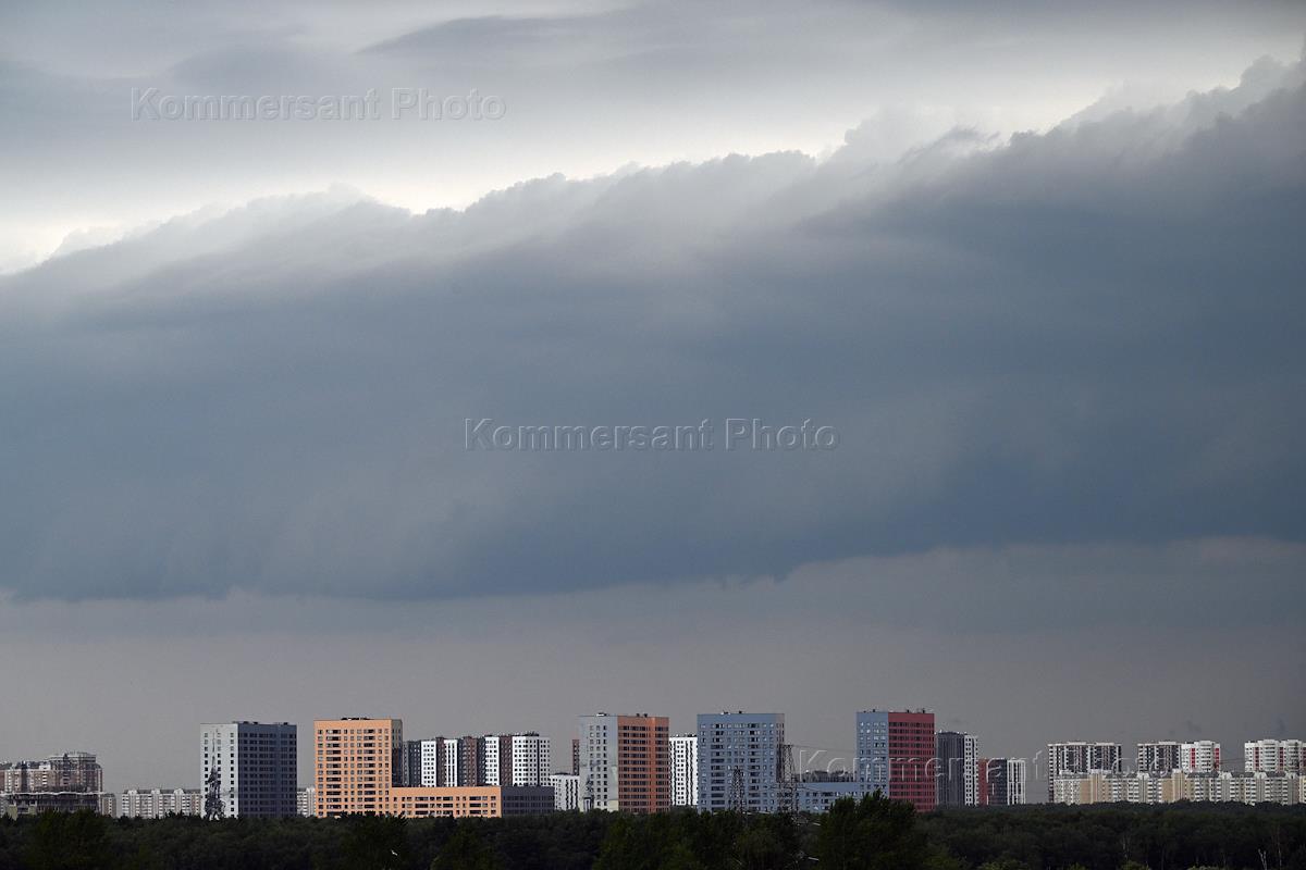 Виды Москвы. Жанровая фотография. Грозовые тучи над жилыми домами.