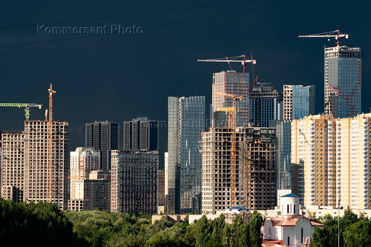 Genre photography. Views of Moscow. Construction of a multi-storey residential complex.