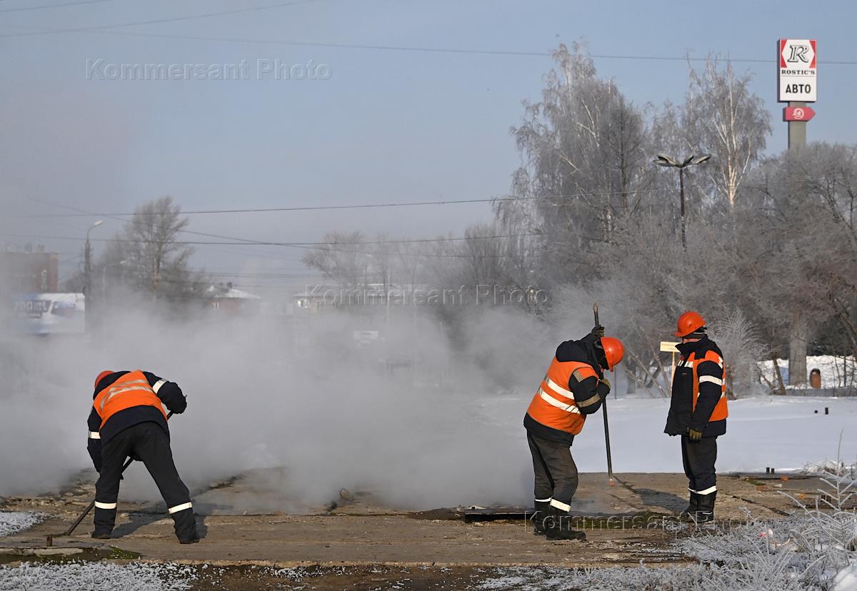 Views of Omsk. Genre photography. Workers during the elimination of a heating network failure.