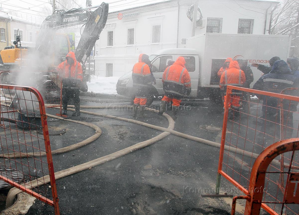 Сотрудники компании "Теплоэнерго" во время ликвидации последствий утечки теплоносителя службами "Теплоэнерго".
