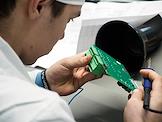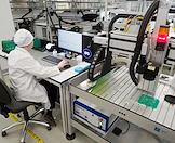 АО "НИИ ТМ" (Научно-исследовательского института точной механики). Сотрудники во время работы. Жанровая фотография. Табличка "Зона, защищенная от электростатического разряда".