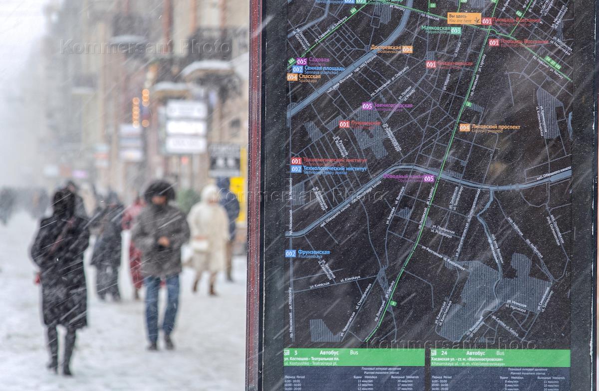 Виды Санкт-Петербурга. Жанровая фотография. Схема транспорта на рекламно-информационном щите на площади Восстания.