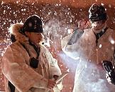 Праздник Крещения Господня. Крещенские купания в пруду парка "Покровское-Стрешнево". Священнослужитель во время обряда освящения воды.
