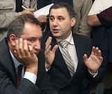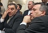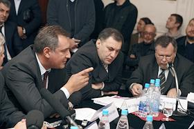 Член Комитета Государственной Думы по международным делам Дмитрий Рогозин (слева) и бывший мэр Грозного Бислан Гантамиров (справа) во время заседания "Круглого стола" на тему: "Политический смысл "кадыровщины" и угроза распада Российской Федерации". Заседание прошло в Центральном Доме журналиста.