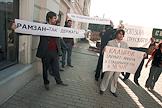 Группа чеченцев с плакатами "Кадыров гарант мира и стабильности в Чечне!", "Рогозин провокатор!" у Центрального Дома журналиста, где проходил "Круглый стол" на тему: "Политический смысл "кадыровщины" и угроза распада Российской Федерации".