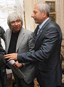 Бывший мэр Грозного Бислан Гантамиров (справа) во время заседания "Круглого стола" на тему: "Политический смысл "кадыровщины" и угроза распада Российской Федерации". Заседание прошло в Центральном Доме журналиста.