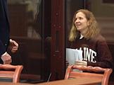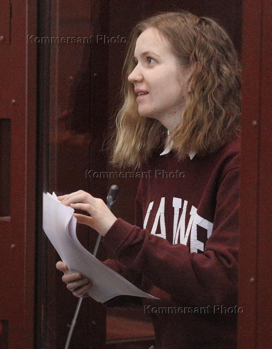 Выездное заседание Второго западного окружного военного суда по уголовному делу в отношении Дарьи Треповой (внесена в реестр террористов и экстремистов Росфинмониторинга), обвиняемой во взрыве в кафе "Стрит-бар" на Университетской набережной, в здании 1-го Западного окружного военного суда. Обвиняемая Дарья Трепова (внесена в реестр террористов и экстремистов Росфинмониторинга) во время заседания.