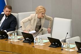 Пленарное заседание Государственной думы (ГД) России. Председатель комитета ГД России по развитию гражданского общества, вопросам общественных и религиозных объединений Ольга Тимофеева во время заседания.