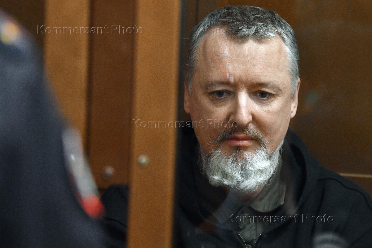 Оглашение приговора по делу бывшего министра обороны Донецкой Народной Республики (ДНР) Игоря Стрелкова (Гиркина), обвиняемого в призывах к экстремистской деятельности, в Московском городском суде. Бывший министр обороны ДНР Игорь Стрелков (Гиркин) во время заседания суда.