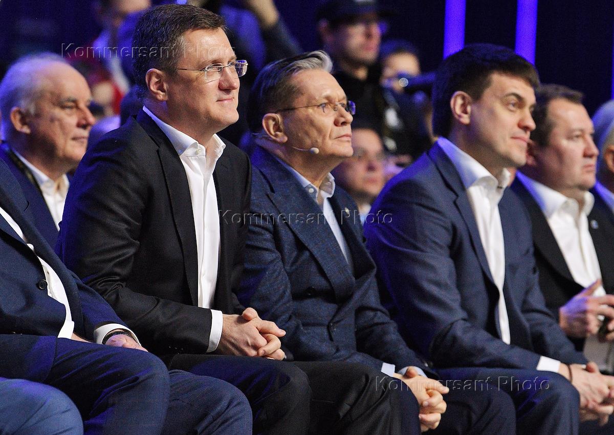 Международная выставка-форум "Россия" на ВДНХ. Церемония открытия "Дня энергетики". Слева направо: заместитель председателя правительства России Александр Новак, генеральный директор госкорпорации "Росатом" Алексей Лихачев и губернатор Красноярского края Михаил Котюков на церемонии.