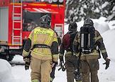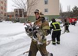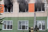 Fire in the 18th city hospital on Khusain Mavlyutov Street. Genre photography. Firefighters from the Russian Ministry of Emergency Situations extinguishing a fire.