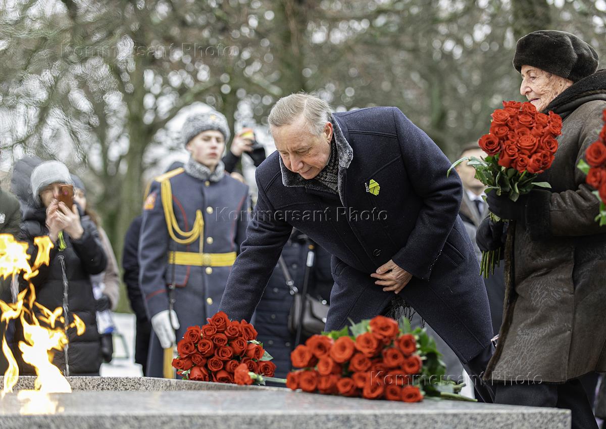 Мероприятия, посвященные 80-летию со дня снятия Блокады Ленинграда. Губернатор Санкт-Петербурга Александр Беглов во время возложения цветов на Пискаревском мемориальной кладбище.