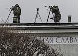 Мероприятия, посвященные 80-летию со дня снятия Блокады Ленинграда. Церемония возложения цветов на Пискаревском мемориальной кладбище. Жанровая фотография. Снайперы во время дежурства на церемонии.