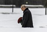 Мероприятия, посвященные 80-летию со дня снятия Блокады Ленинграда. Президент России Владимир Путин во время возложения цветов на Пискаревском мемориальной кладбище.