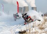 Всероссийское соревнование по мотоциклетному спорту на автодроме "Сибирское Кольцо". Участники во время прохождения этапа соревнований.