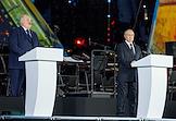 Мероприятия, посвященные 80-летию со дня снятия Блокады Ленинграда. Президент России Владимир Путин (справа) и президент Белоруссии Александр Лукашенко (слева) на спектакле-концерте на стадионе "Газпром Арена".