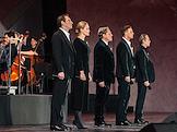 Мероприятия, посвященные 80-летию со дня снятия Блокады Ленинграда. Слева направо: художественный руководитель Московского художественного театра (МХТ) имени А.П.Чехова Константин Хабенский, актеры Юлия Пересильд, Игорь Скляр, Павел Чинарев и художественный руководитель театра-студии Олега Табакова Владимир Машков во время выступления на спектакле-концерте на стадионе "Газпром Арена".