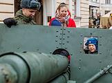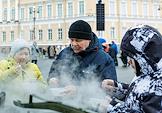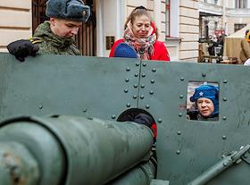 Мероприятия, посвященные 80-летию со дня снятия Блокады Ленинграда. Жанровая фотография. Участники мероприятий на выставке ретротехники Ленрезерва на Дворцовой площади.