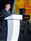 Мероприятия, посвященные 80-летию со дня снятия Блокады Ленинграда. Президент России Владимир Путин во время выступления спектакле-концерте на стадионе "Газпром Арена".
