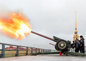 Мероприятия, посвященные 80-летию со дня снятия Блокады Ленинграда. Жанровая фотография. Залп пушки со стены Петропавловской крепости.