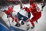 Континентальная хоккейная лига (КХЛ). Чемпионат сезона 2023/24. Матч между командами "Спартак" (Москва) - "Торпедо" (Нижний Новгород) на стадионе "Мегаспорт". Игрок команды "Спартак" Шейн Принс (слева) во время матча.