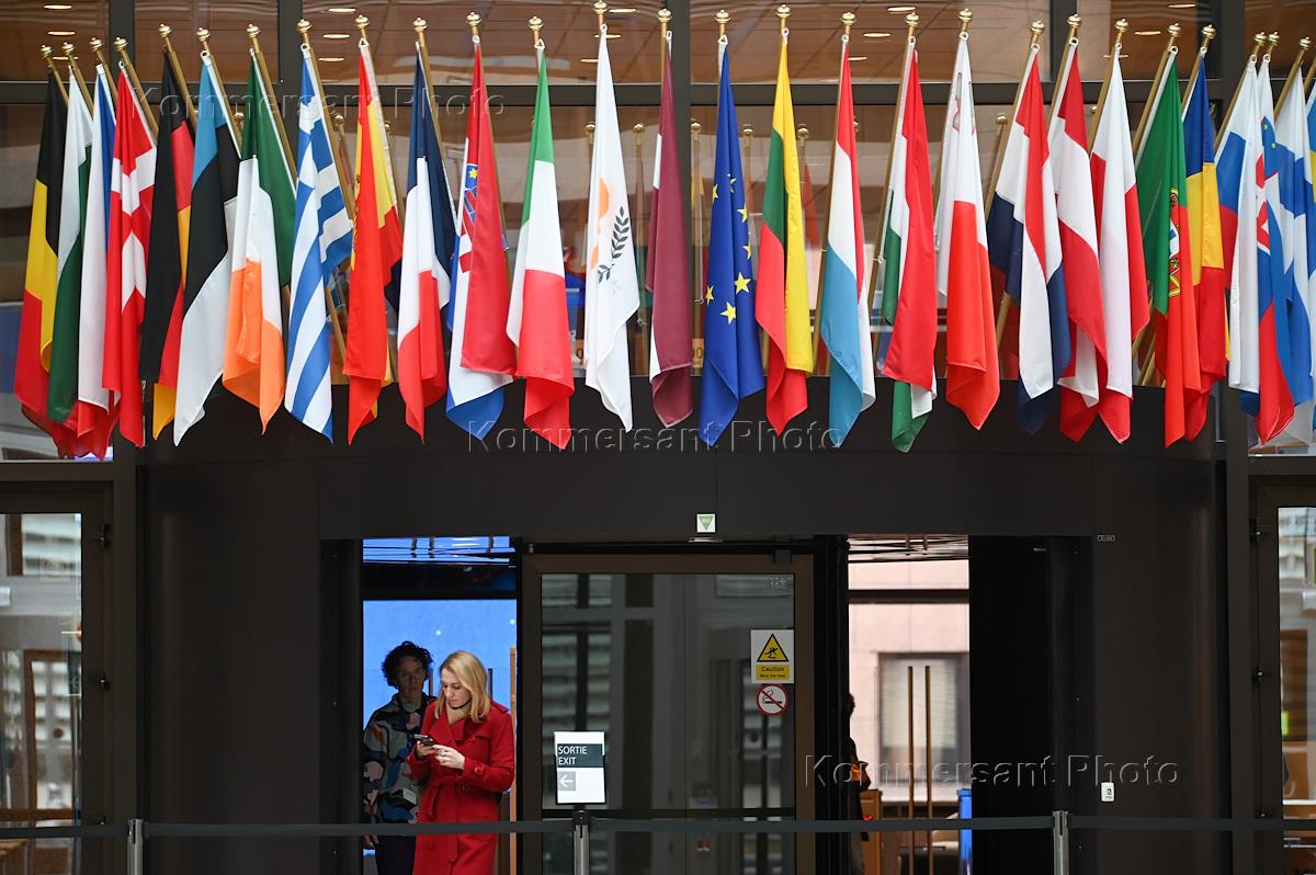 Виды Брюсселя перед саммитом Европейского Союза (ЕС). Жанровая фотография. Государственные флаги стран-участниц саммита.