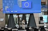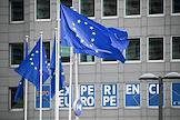 Виды Брюсселя перед саммитом Европейского Союза (ЕС). Жанровая фотография. Флаги ЕС.