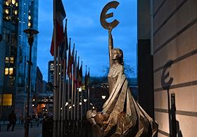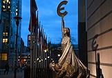 Виды Брюсселя. Скульптура, посвященная европейской валюте - евро у здания Европарламента.