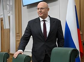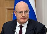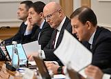 Заседание совета по развитию цифровой экономики на тему: "Россия на связи: развитие инфраструктуры связи в субъектах Российской Федерации" в Совете Федерации (СФ) России. Заместитель председателя правительства России Дмитрий Чернышенко во время заседания.