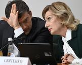 Заседание совета по развитию цифровой экономики на тему: "Россия на связи: развитие инфраструктуры связи в субъектах Российской Федерации" в Совете Федерации (СФ) России. Заместитель председателя СФ России Инна Святенко (справа) во время заседания.