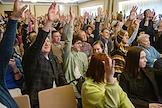 Участники встречи с кандидатом на выборах на должность президента России, представитель партии "Гражданская инициатива" Борисом Надеждиным в отеле "Гранд автограф".