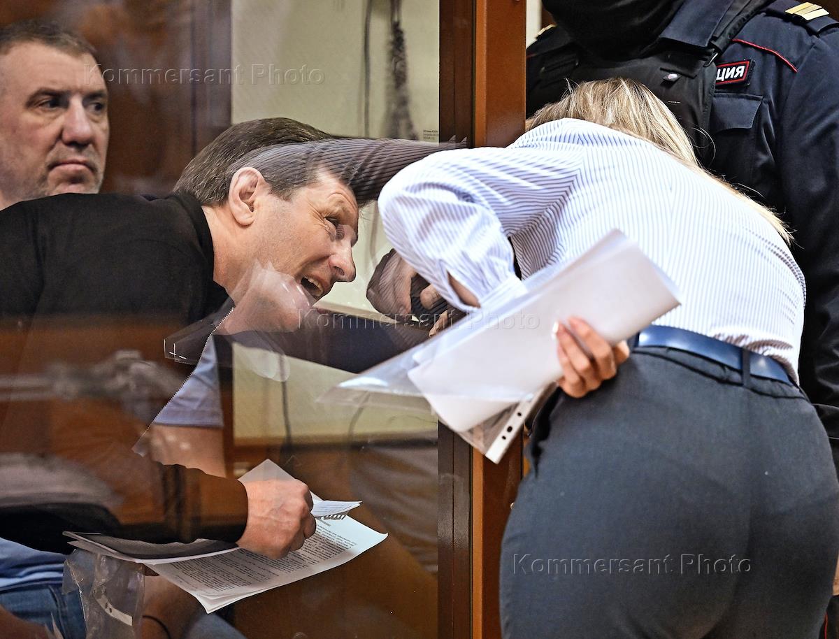 Заседание по делу в отношении бывшего губернатора Хабаровского края Сергея Фургала и других фигурантов, обвиняемых в хищении активов МСП-Банка, в Бабушкинском районном суде. Бывший губернатор Хабаровского края Сергей Фургал (в центре) во время заседания.