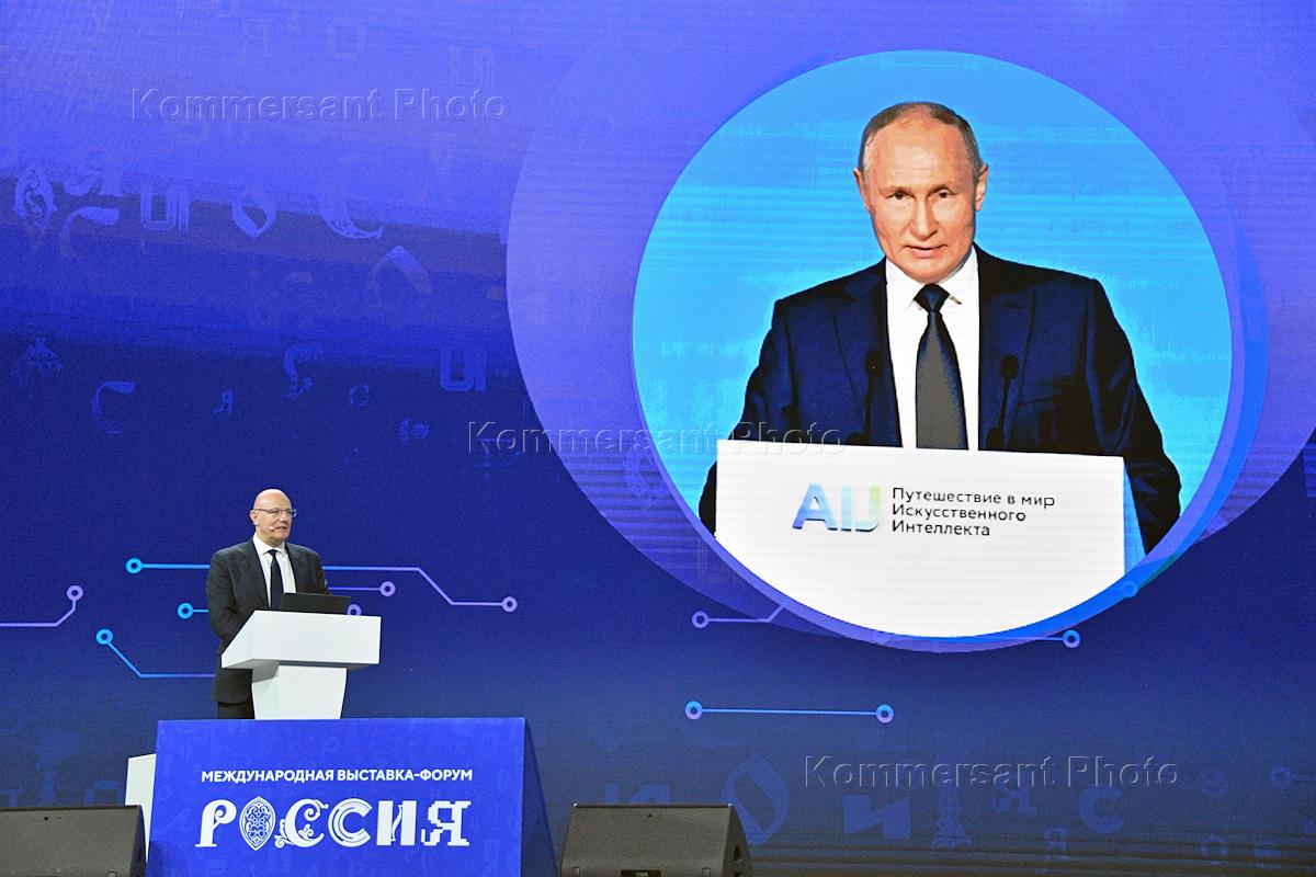 Форум национальных достижений на выставке-форуме "Россия" на ВДНХ. Пленарная сессия "Главные достижения цифровой экономики России". Старший вице-президент, руководитель блока "Технологии" Сбербанка Андрей Белевцев во время пленарной сессии.