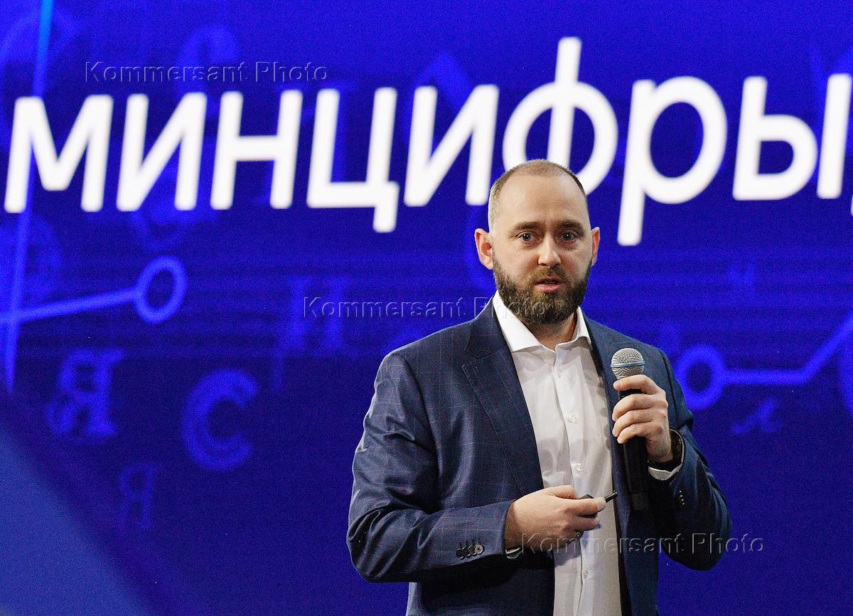Форум национальных достижений на выставке-форуме "Россия" на ВДНХ. Пленарная сессия "Главные достижения цифровой экономики России". Министр цифрового развития, связи и массовых коммуникаций России Максут Шадаев во время пленарной сессии.