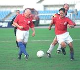 Министр внутренних дел России Борис Грызлов (в центре) на матче по футболу между командами депутатов Государственной Думы России и Бундестага Германии. Матч состоялся на стадионе "Динамо".