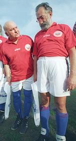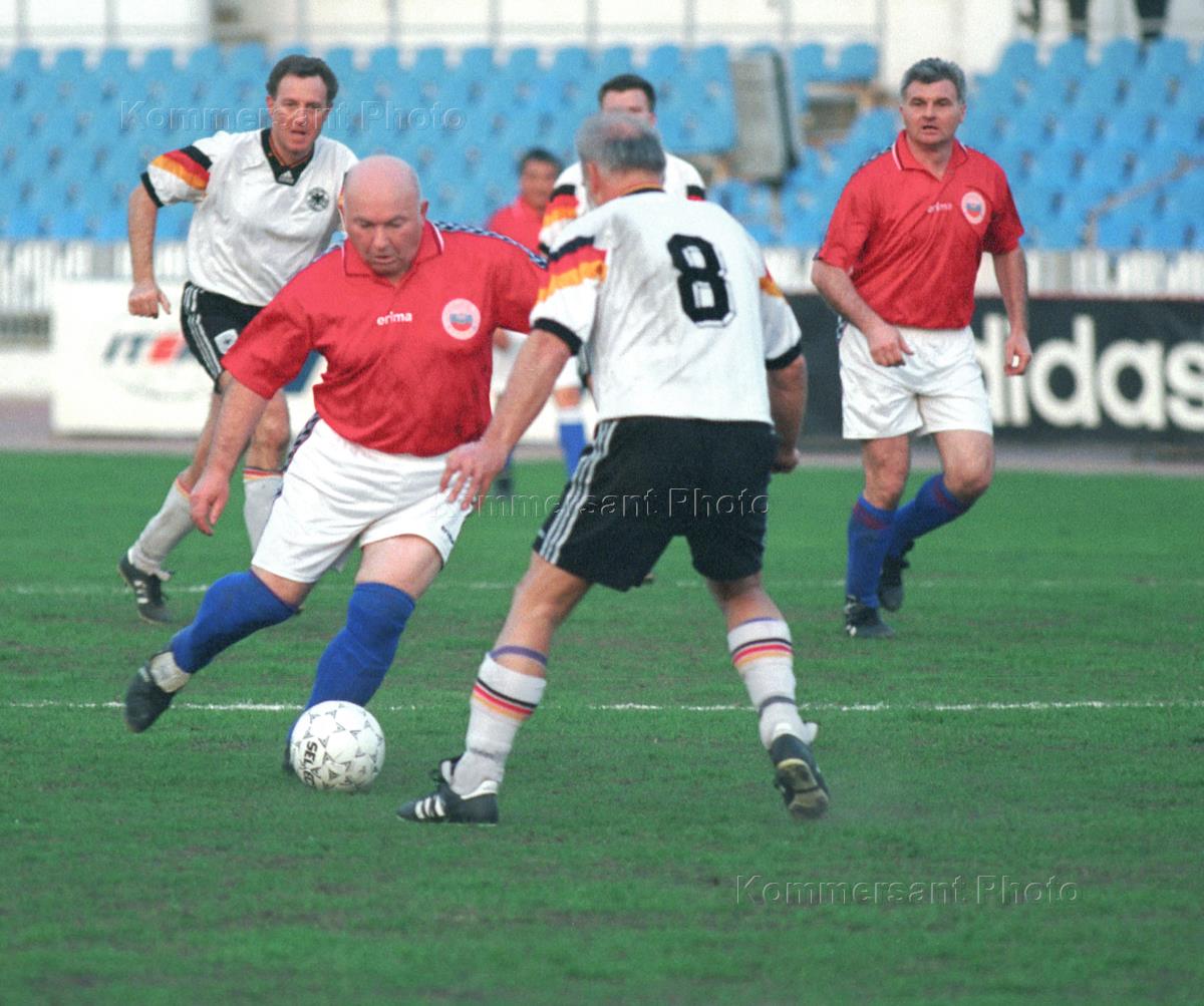 Мэр Москвы Юрий Лужков (справа) на матче по футболу между командами депутатов Государственной Думы России и Бундестага Германии. Матч состоялся на стадионе "Динамо".