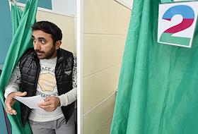 Внеочередные выборы президента Республики Азербайджан. Избиратель на избирательном участке во время голосования.