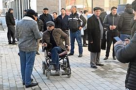 Внеочередные выборы президента Республики Азербайджан. Избиратели возле избирательного участка.