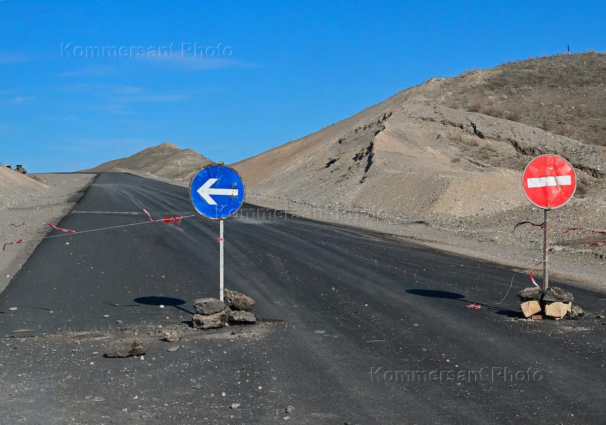 Виды Азербайджана. Жанровая фотография. Полицейский пост на въезде в город Физули.