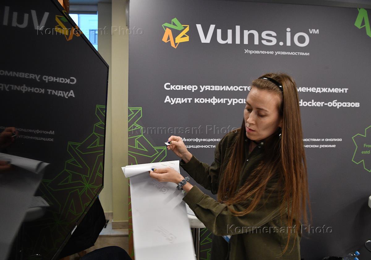 Национальный форум информационной безопасности "Инфофорум" в "Цифровом деловом пространстве". Профессиональная выставка "Цифровая эпоха и кибербезопасность". Стенд компании "Vulns.io".