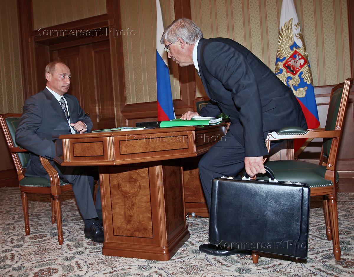 Генеральный прокурор России Юрий Чайка во время встречи с Президентом России Владимиром Путиным в президентской резиденции "Бочаров ручей".