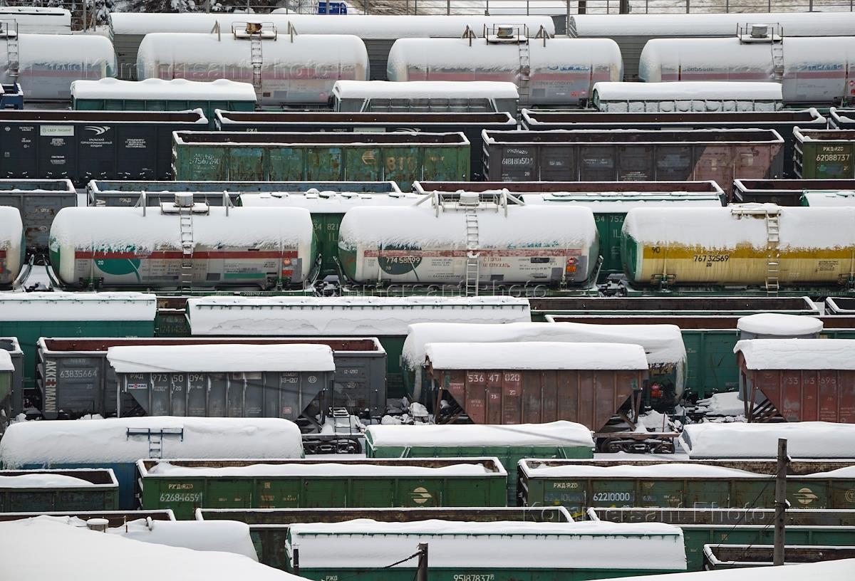 Виды Казани. Жанровая фотография. Грузовые составы на железнодорожной станции Юдино Горьковской железной дороги.