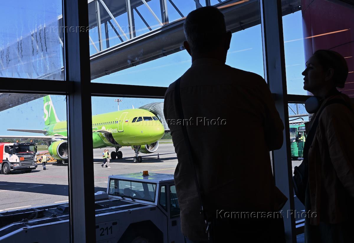 Genre photography. S7 airline plane on the tarmac.