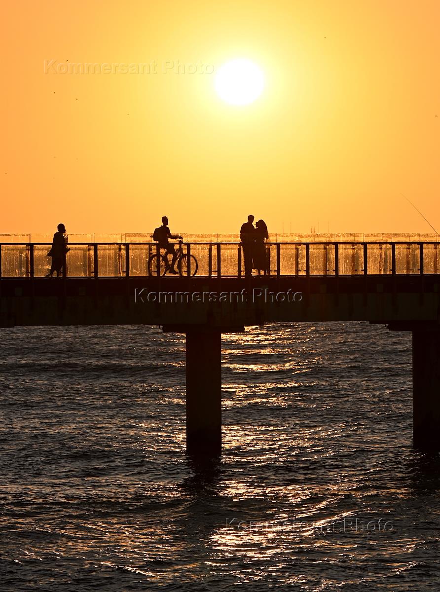 Жанровая фотография. Отдыхающие на пирсе во время заката.