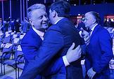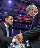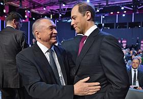 "День промышленности" в рамках Международной выставки-форума "Россия" на ВДНХ. Пленарная сессия "О ключевых достижениях и результатах развития промышленности. Итоговая коллегия". Президент торгово-промышленной палаты (ТПП) России Сергей Катырин (слева) и президент Российского союза промышленников и предпринимателей (РСПП) Александр Шохин (в центре) во время сессии.