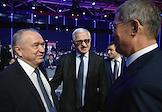 "День промышленности" в рамках Международной выставки-форума "Россия" на ВДНХ. Пленарная сессия "О ключевых достижениях и результатах развития промышленности. Итоговая коллегия". Слева направо: президент торгово-промышленной палаты (ТПП) России Сергей Катырин, президент Российского союза промышленников и предпринимателей (РСПП) Александр Шохин и глава Республики Башкортостан Радий Хабиров во время сессии.