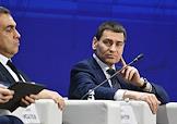 "День промышленности" в рамках Международной выставки-форума "Россия" на ВДНХ. Пленарная сессия "О ключевых достижениях и результатах развития промышленности. Итоговая коллегия". Президент АО "АВТОВАЗ" Максим Соколов (слева) на сессии.