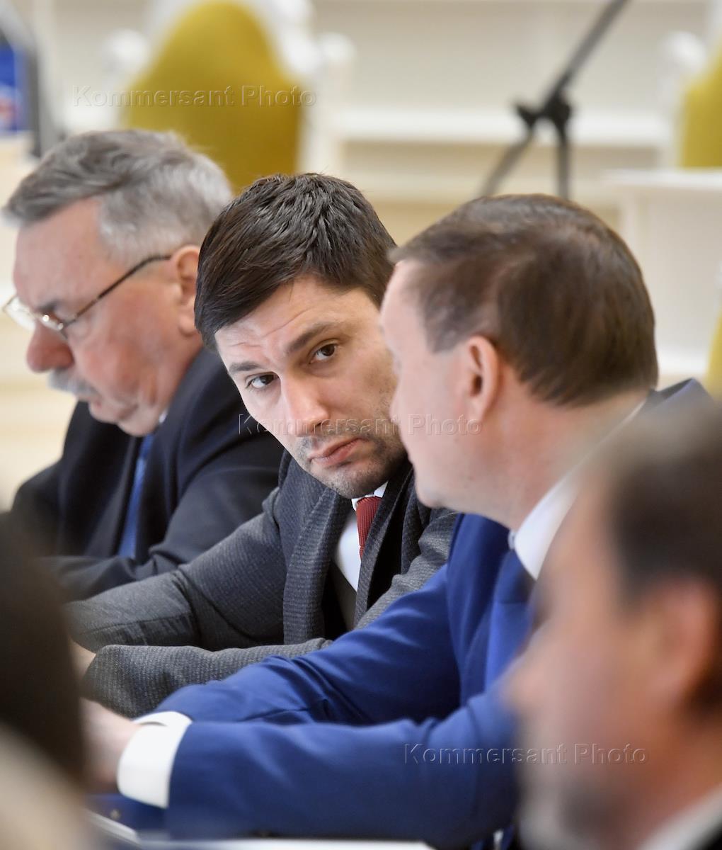 Заседание Законодательного собрания Санкт-Петербурга. Депутат ЗакС Санкт-Петербурга Антон Соловьев (в центре) во время заседания.
